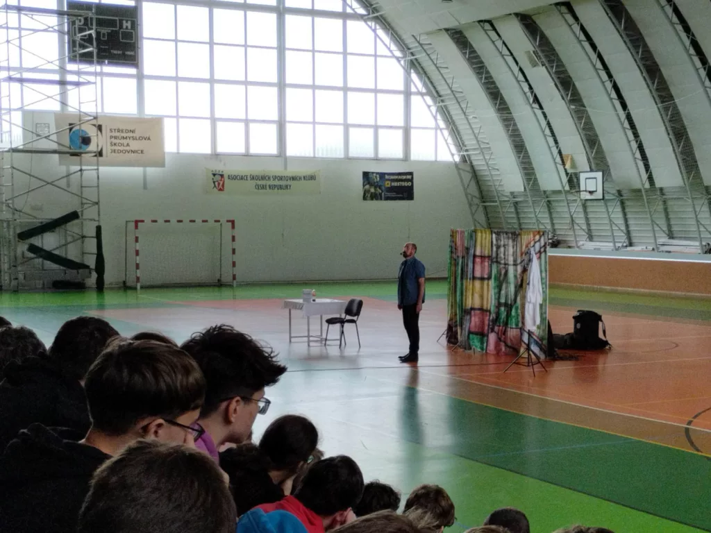 Naši žáci byli vtaženi do děje poutavým vyprávěním a výborným hereckým výkonem.
