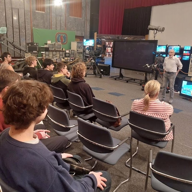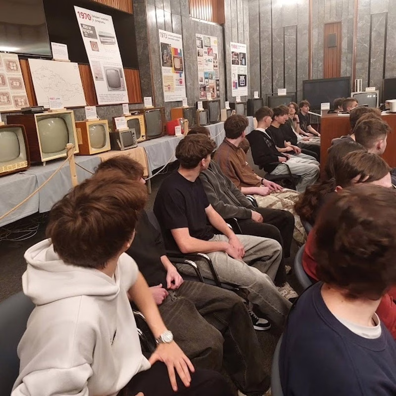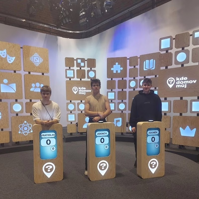 Nahlédli jsme do studia Déčka i do kulis pořadu Kde domov můj, kde se právě chystalo natáčení s Alešem Hámou. Na chodbách se nám poštěstilo potkat herce Marka Lamboru a na závěr si žáci sami vyzkoušeli práci moderátorů a kameramanů.